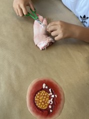 - A simulation of punch skin grafting using pigskin, to demonstrate the technique in a hands-on and understandable way