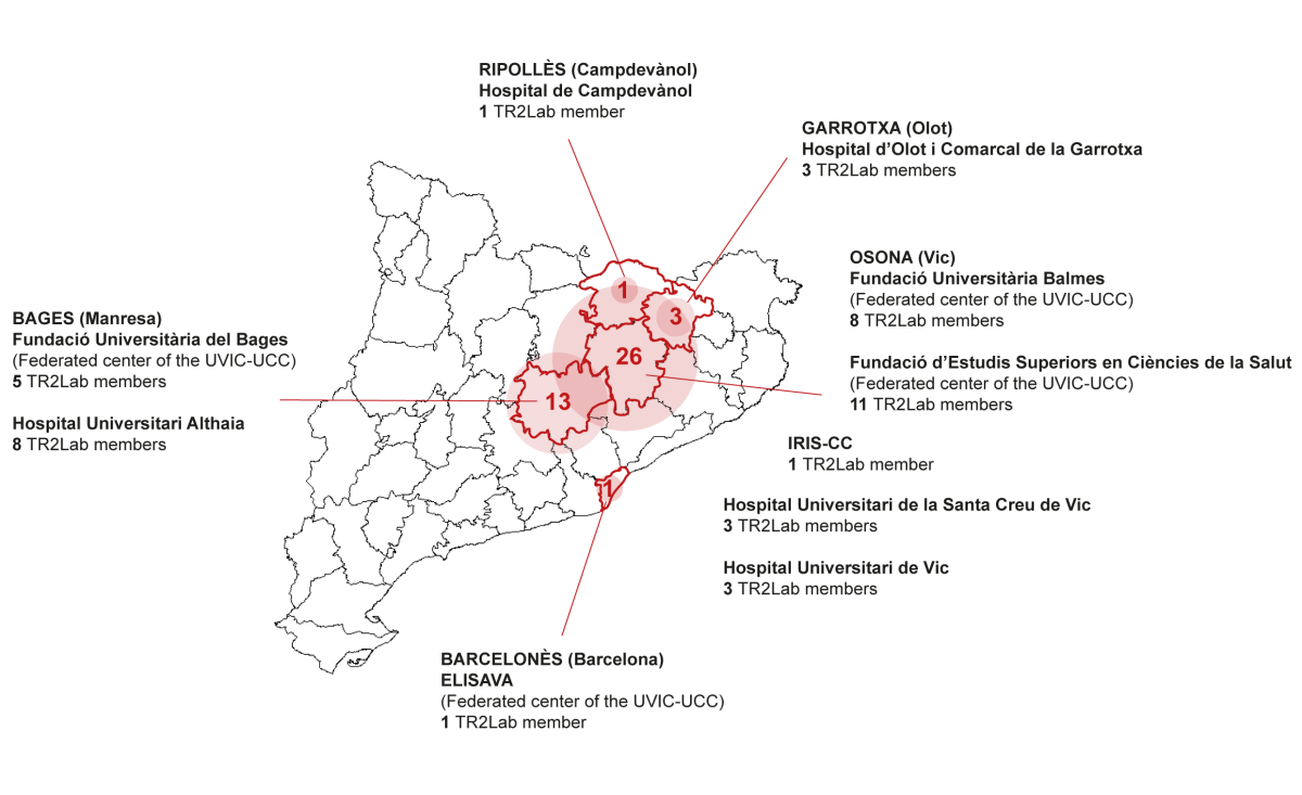 The TR2Lab is integrated by researchers from several institutions: University of Vic – Central University of Catalonia, Consorci Hospitalari de Vic, Hospital Universitari de la Santa Creu de Vic, Fundació Hospital d’Olot i Comarcal de la Garrotxa, Althaia – Xarxa Assistencial Universitaria Manresa, Hospital de Campdevànol and other international collaborators.