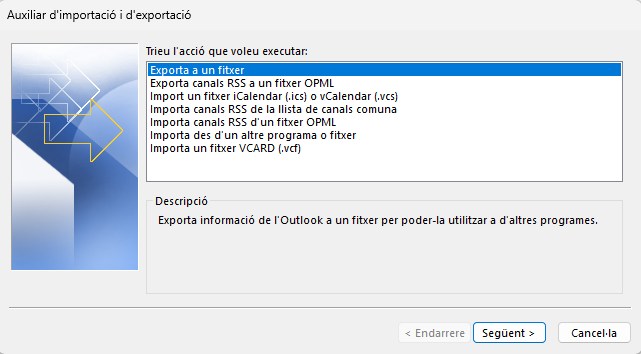 1. Exportar els correus amb Outlook (mètode recomanat)