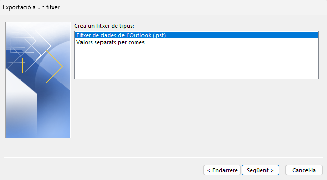 - Tria Fitxer de dades d’Outlook (.pst).