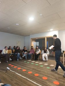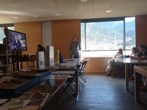 Després de dinar, els estudiants de les diferents universitats catalanes van poder comunicar les seves experiències de pràctiques en centres rurals amb l’objectiu de compartir mirades sobre l’educació en l’àmbit rural. A mitja tarda, els alumnes van participar en tallers creatius i innovadors, com ara el taller d’una maleta pedagògica, per part de la Càtedra Pirineu: Educar en patrimoni dels Pirineus a l’educació formal. També es va comptar amb la presència de dos mestres de la ZER del Pallars Jussà amb el taller: Procés d’aprenentatge de l’escriptura a l’aula internivell. Un altre dels tallers que es van dur a terme va ser organitzat per Obaga, envers la temàtica de les falles a partir, també, d’una maleta pedagògica i, finalment, un taller al planetari del centre Món Natura Pirineus. El dia va acabar amb una vetllada musical amb dos acordionistes de la zona.