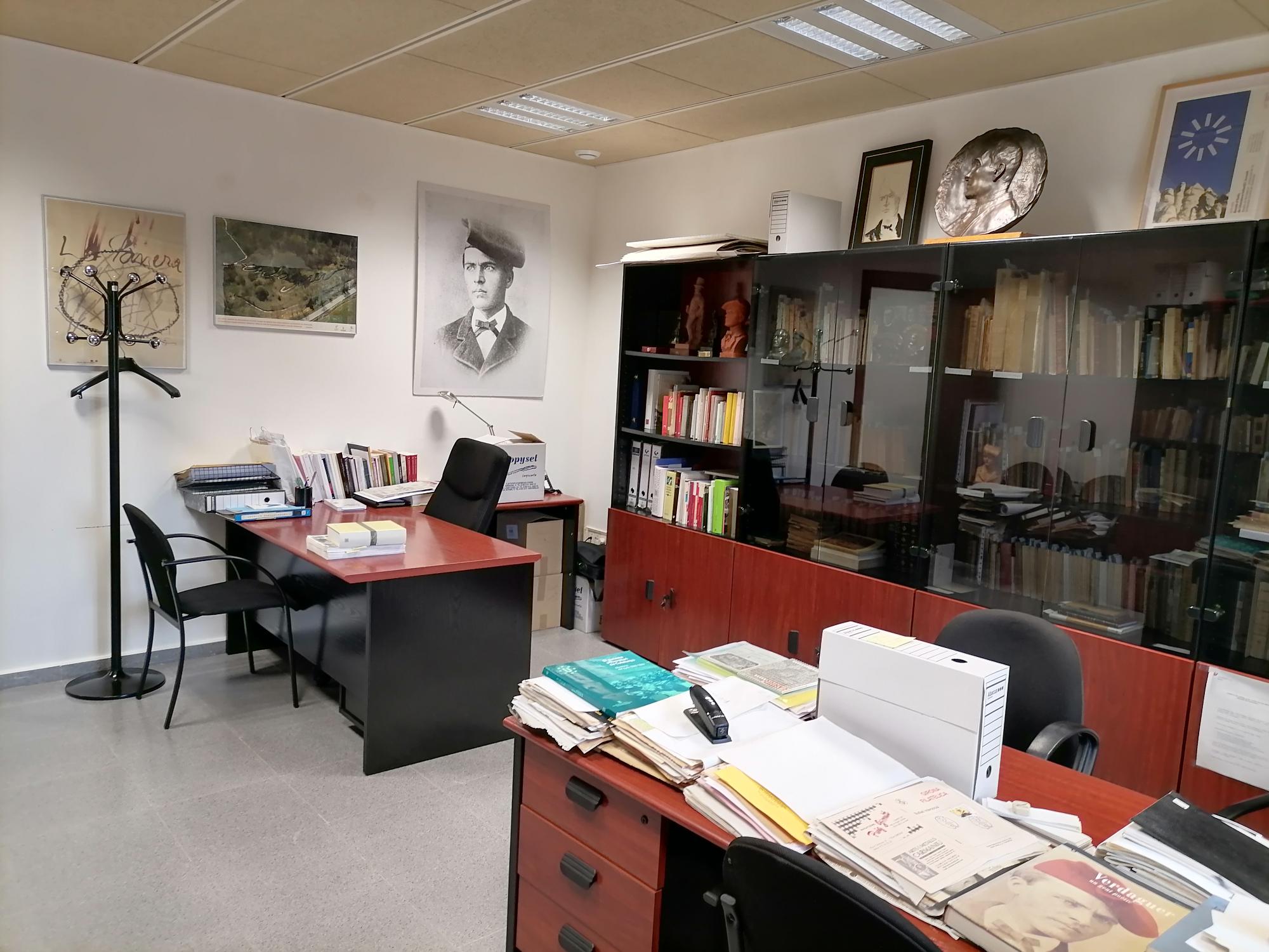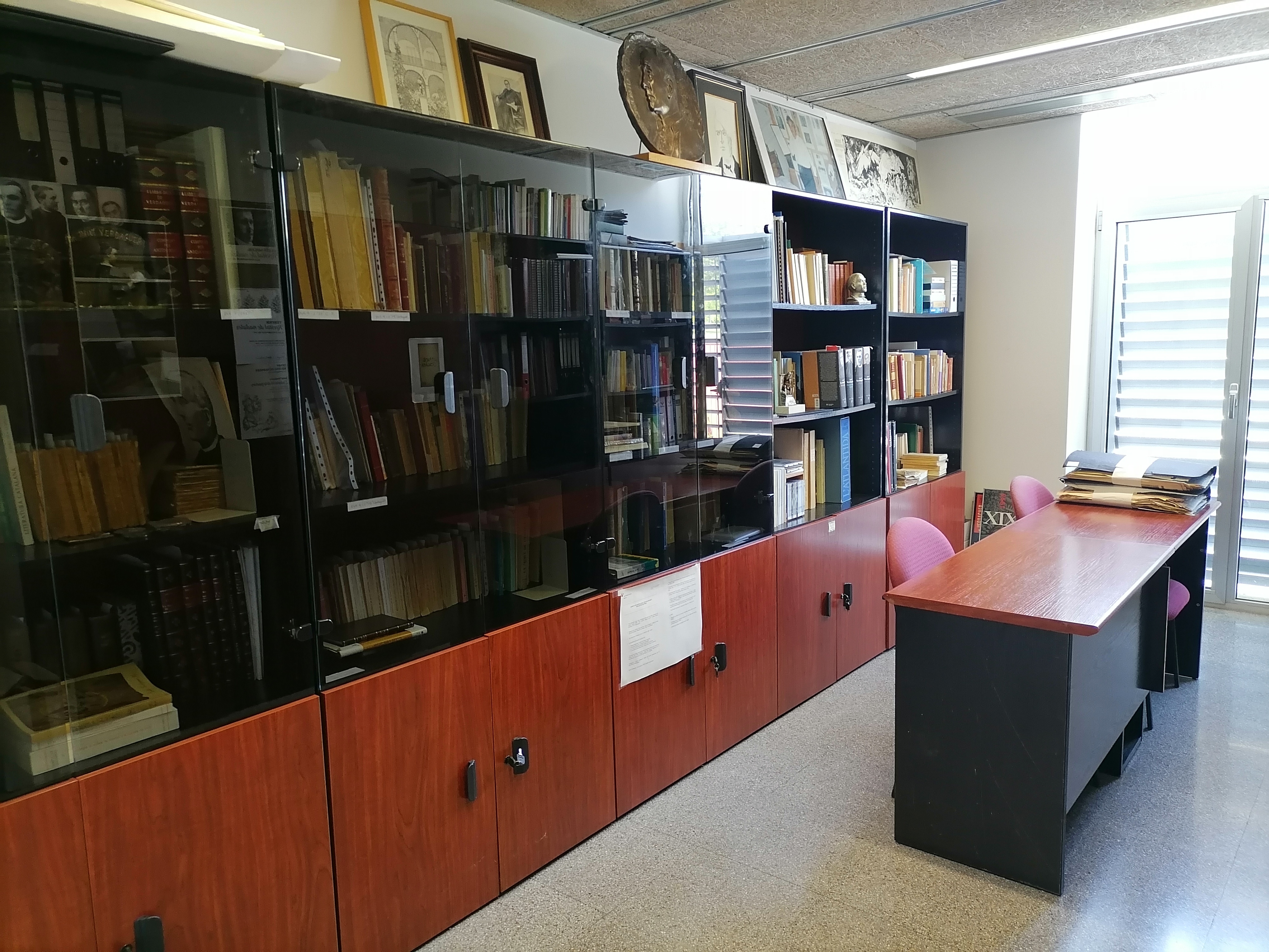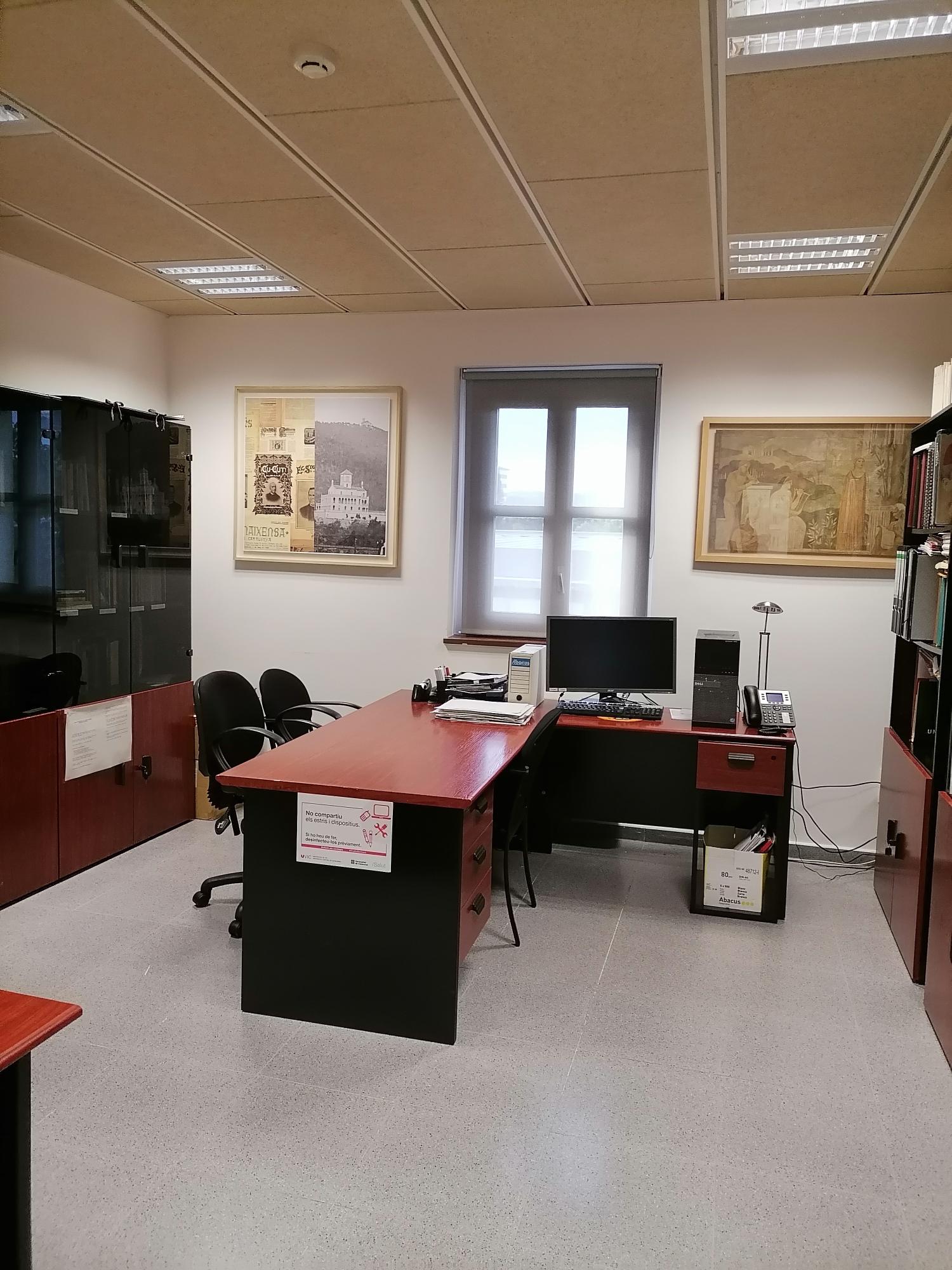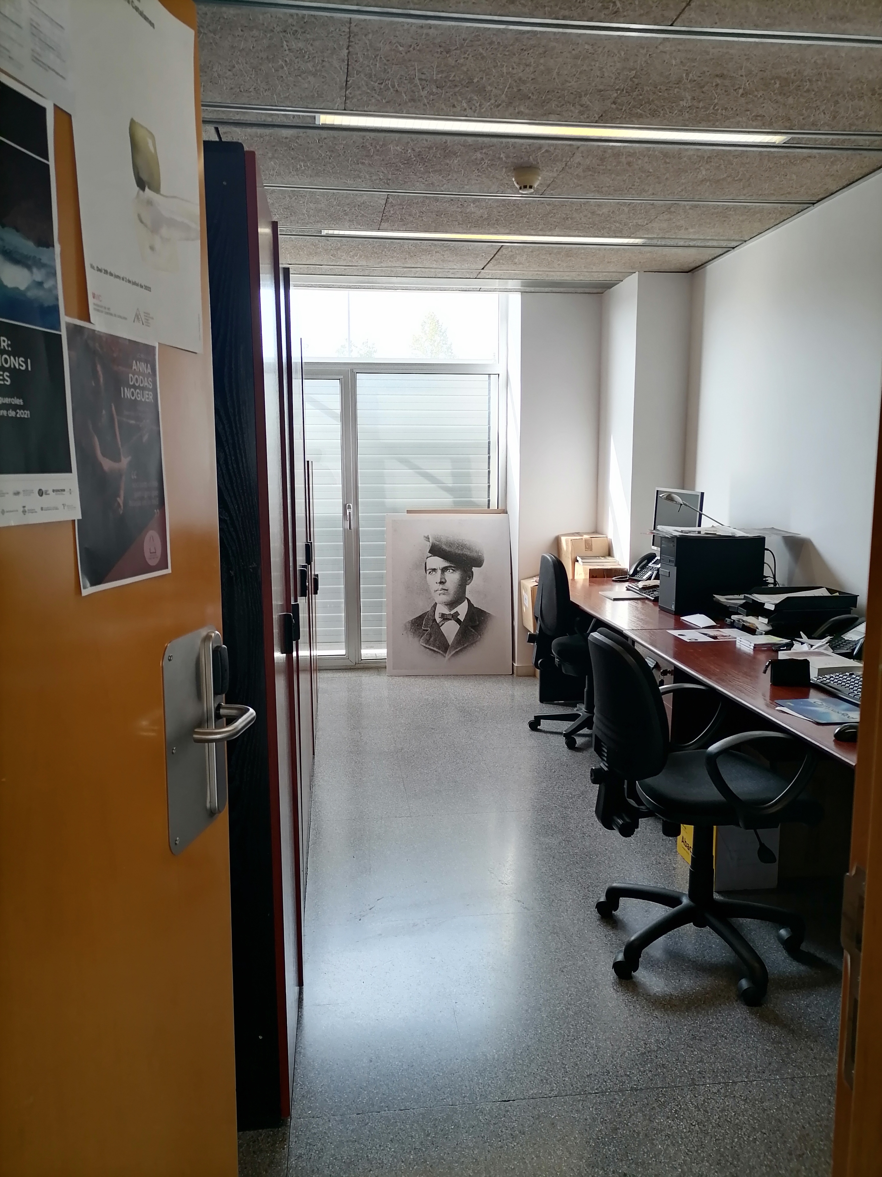 Aquesta setmana (10-13 de juliol de 2023) la Càtedra Verdaguer d’Estudis Literaris ha hagut de traslladar-se a un altre lloc. Per això, ha hagut de deixar els dos espais de la Masia de la Torre dels Frares (primer pis) –vegeu les fotografies dels dos despatxos (Masia 1 i Masia 2)– i ha passat als petits espais T002 i T006 de l’Edifici Torre dels Frares.