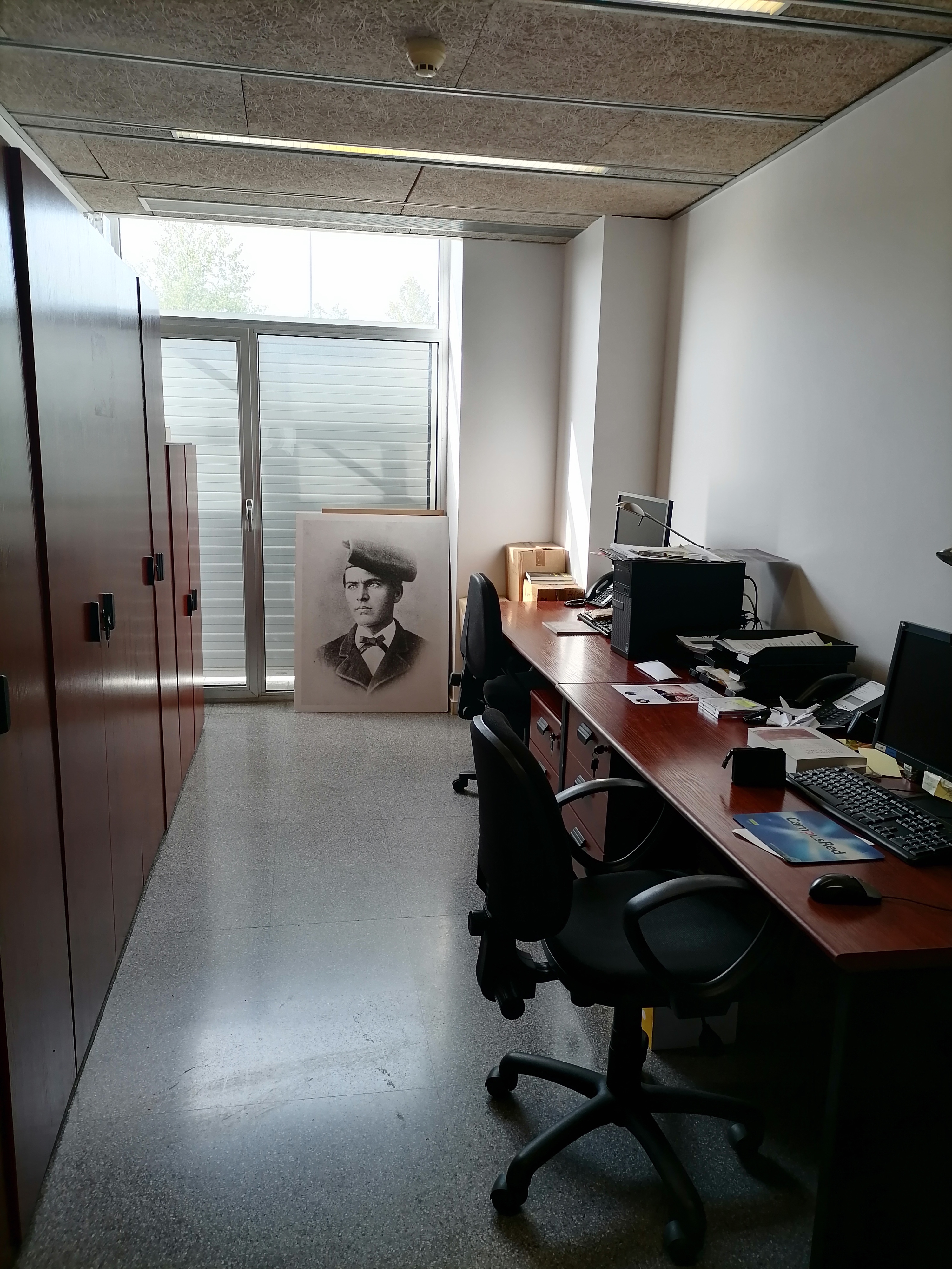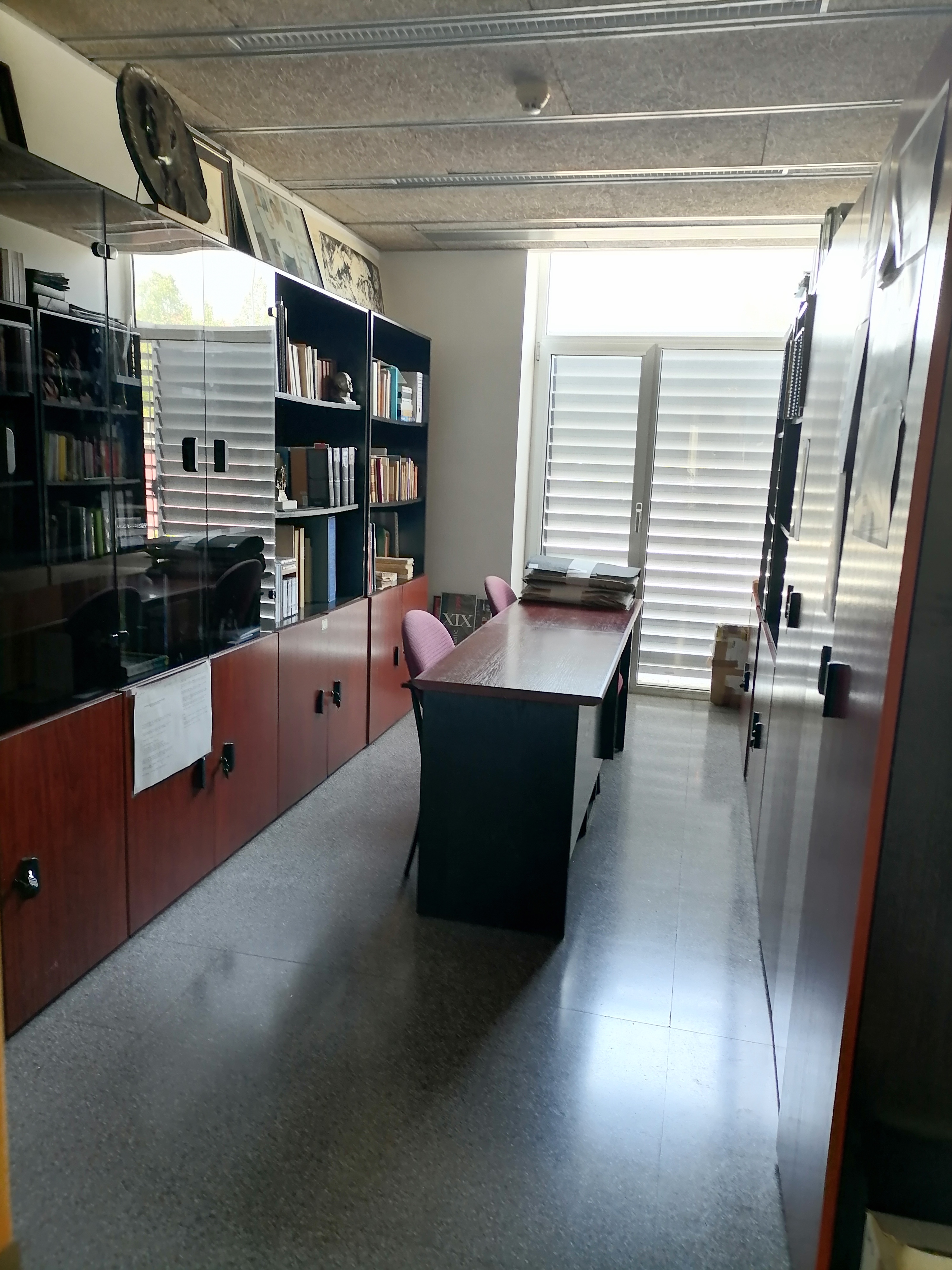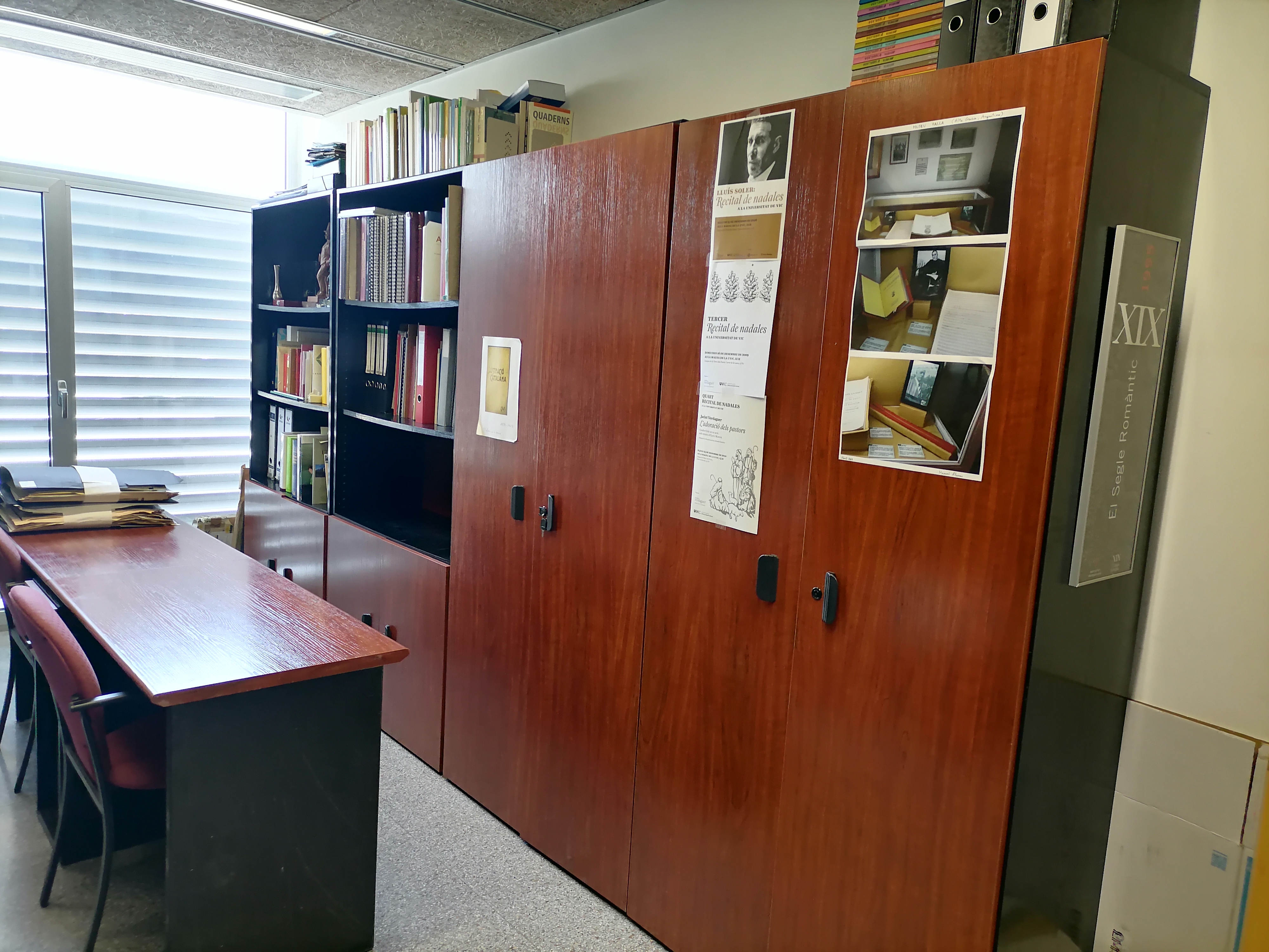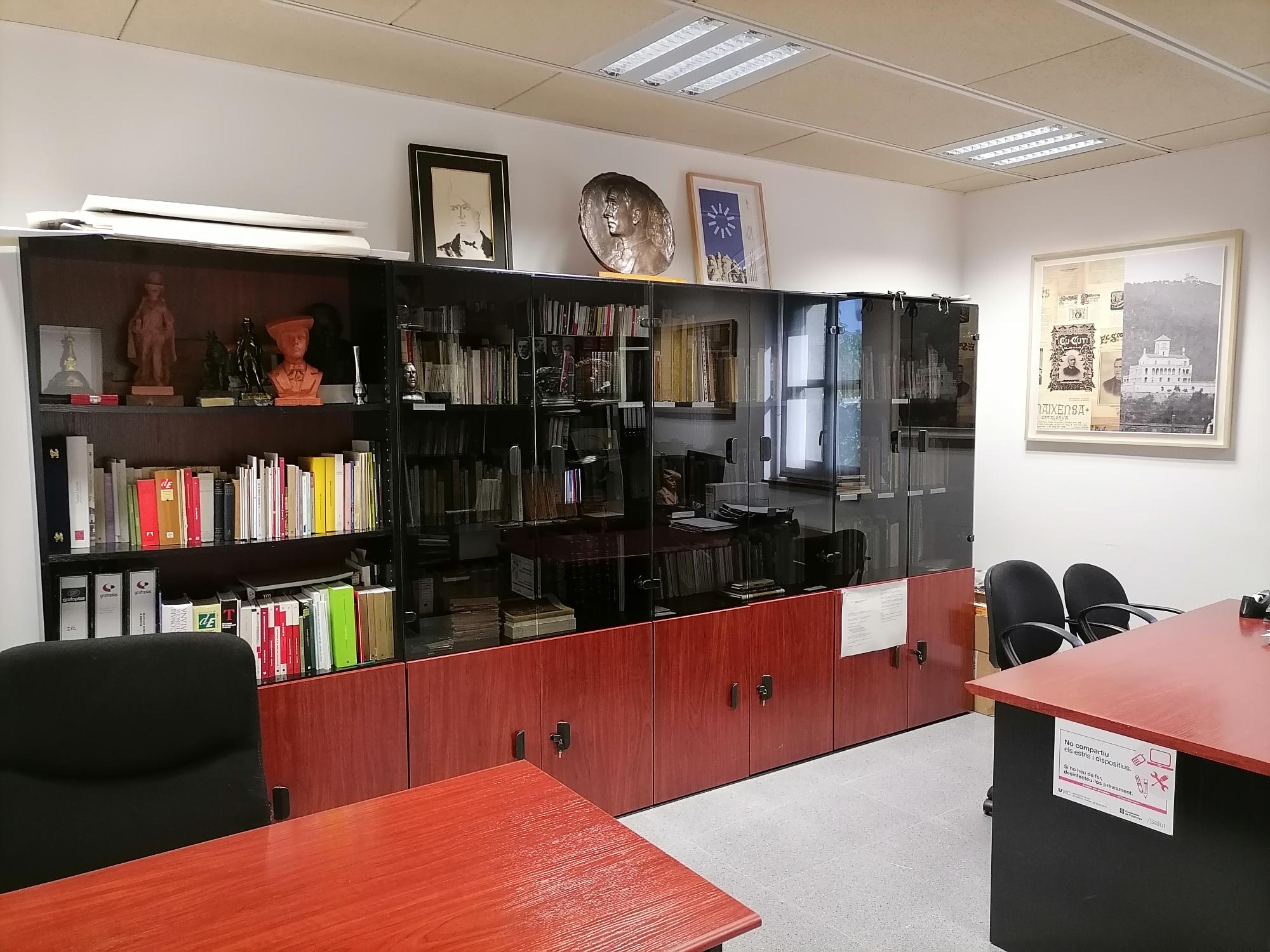Aquesta setmana (10-13 de juliol de 2023) la Càtedra Verdaguer d’Estudis Literaris ha hagut de traslladar-se a un altre lloc. Per això, ha hagut de deixar els dos espais de la Masia de la Torre dels Frares (primer pis) –vegeu les fotografies dels dos despatxos (Masia 1 i Masia 2)– i ha passat als petits espais T002 i T006 de l’Edifici Torre dels Frares.