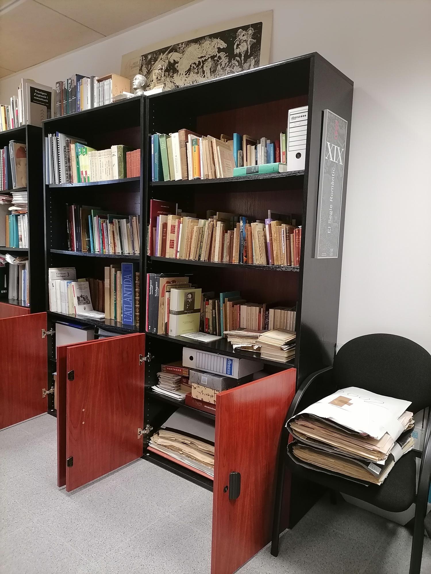 Entre la seva documentació i el seu material bibliogràfic, la Càtedra conserva el fons Pallàs Amat –una bona col·lecció de llibres de i sobre Verdaguer que va ingressar el 1999 i que es va catalogar i inventariar l’any 2002 (https://www.uvic.cat/biblioteca/colleccions/fons-especials/pallas-amat)–, el fons verdaguerià de Joan Carreres Péra (vegeu Llengua Nacional i Portalgironi.cat), donació de desembre de 2021, i el fons de la Societat Verdaguer.