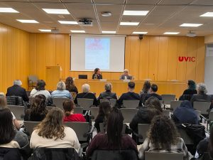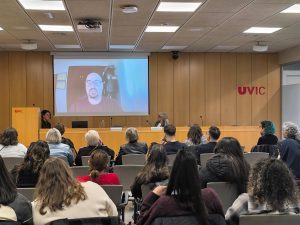 L’acte també va incloure la presentació del projecte UNICODI – Universitats contra els discursos d’odi, a càrrec de la companya Sandra Ezquerra, investigadora principal del projecte i coordinadora del grup de recerca Societats, Polítiques i Comunitats Inclusives de la UVic-UCC. Aquesta recerca neix amb l’objectiu d’analitzar la penetració de narratives d’intolerància entre la joventut universitària i dissenyar estratègies per combatre-les des de l’àmbit acadèmic. El projecte preveu una diagnosi de la situació entre l’alumnat de la UVIC-UCC basada en enquestes i grups focals, així com el desplegament d’accions com tallers, campanyes de comunicació i protocols institucionals per prevenir i abordar situacions discriminatòries. UNICODI vol aportar evidència científica per visibilitzar el problema, identificar col·lectius vulnerabilitzats i contribuir a reforçar el paper de la universitat com a espai de pensament crític i convivència democràtica.