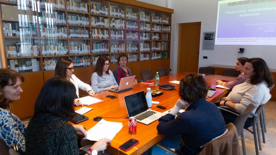 Coordinat per Pilar Godayol, el seminari va comptar amb la presència de dues investigadores reconegudes internacionalment en aquesta matèria: la Dra. Maria Laura Spoturno (Universitat Nacional de La Plata / CONICET, Argentina) i la Dra. Olga Castro (Universitat Autònoma de Barcelona i Warwick University, Anglaterra). D’una banda, Maria Laura Spoturno va presentar la ponència “Traducción, subjetividad y activismos”, en què va abordar temes sobre traducció, subjectivitat, gènere i activismes, des d’una mirada que posa en focus en la responsabilitat ètica i social de les pràctiques de traducció i interpretació. De l’altra, Olga Castro va impartir la ponència “Estrategias de traducción feminista en la era del feminismo transnacional”, en què es va endinsar en els estudis feministes de la traducció des d’una perspectiva transnacional i interseccional. Després es va obrir un debat entre les assistents presencials i les virtuals. Aquest seminari s’ha dut a terme amb el suport de l’AGAUR – Departament de Recerca i Universitats de la Generalitatde Catalunya.