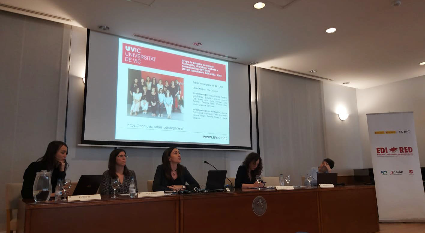 Pilar Godayol i Caterina Riba, coordinadora i investigadora respectivament del grup de recerca en Estudis de Gènere: Traducció, Literatura, Història i Comunicació (GETLIHC) han participat al primer seminari Internacional de la Xarxa Temàtica d’Excel·lència “Red de Estudios y Datos sobre la Edición Iberoamericana y Transnacional (RED-EDIT)”. Ho han fet impartint la conferència “Traducción, literatura y género: proyectos en curso”, en unes jornades que va acollir el Consejo Superior de Investigaciones Científicas (CSIC), a Madrid, el 10 i 11 de febrer.