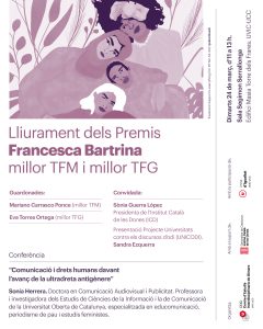 El II Premi Francesca Bartrina al millor TFM ha estat atorgat al treball “Subtitulación inclusiva: análisis de la quinesia en la subtitulación para personas sordas o con discapacidad auditiva en producciones LGTBI+”, de Mariano Carrasco Ponce, mentre l’ XI Premi Francesca Bartrina al millor TFG s’ha otorgat al treball “Terminologia legal i drets humans: El Codi Penal del Pakistan, de les Hudood Ordinances a la Protection of Women (Criminal Laws Amendment) Act” presentat per l’Eva Torres Ortega.
