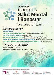 El proper 13 de gener de 2026, a les 10:00 h, tindrà lloc a la Facultat de Medicina l’acte de cloenda del projecte Campus Salut Mental i Benestar.