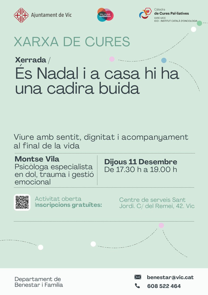 Organitzen: Ajuntament de Vic, Vic Ciutat Cuidadora, Càtedra de cures pal·liatives, Departament de Benestar i Família