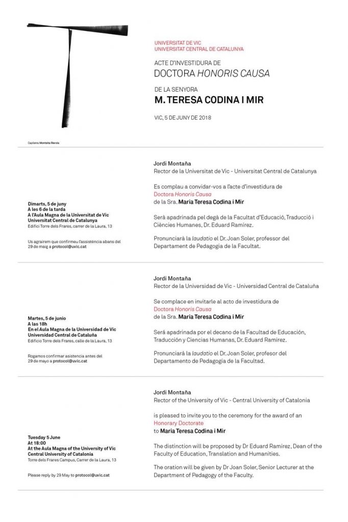 ACTE D’INVESTIDURA de Doctora Honoris Causa de la Sra. Maria Teresa Codina Mir