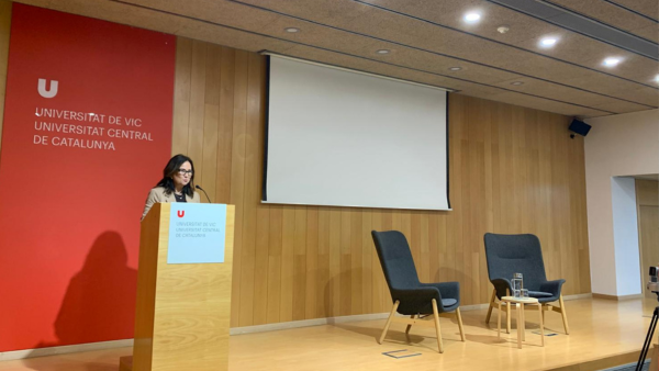 L’encomi va completar el repàs a la trajectòria de la Carme amb una mirada personal i propera. El personal de la FCTE i diversos exestudiants li van retre homenatge de la mà de l’Anna Dalmau, que va evocar episodis concrets del seu recorregut i va convidar companys i antics alumnes a destacar-ne la passió, l’ampli coneixement de la flora i la vegetació de la plana de Vic, el caràcter afable, sensible i pacient, així com la seva capacitat de transmetre entusiasme pel coneixement, la ciència i la conservació de la natura. També es va posar en relleu els vincles personals que havia teixit amb persones de diferents departaments, àrees i centres de la UVic-UCC, així com amb altres institucions. Un fet que va quedar plenament evidenciat amb l’afluència massiva a l’Aula Magna.