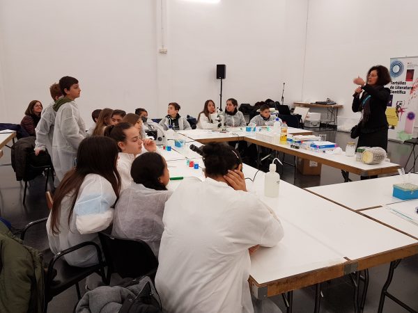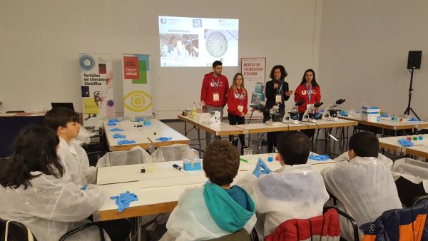 Per una banda el taller Biotech Trivial per aprendre ciència mentre es juga al trivial. BiotechTrivial és un taller inspirat en el llibre Triviacat de Daniel Closa. En el Taller es realitza un joc en equip en un espai on es disposa de material de laboratori amb la finalitat de poder simular un laboratori de Biociències. És un taller totalment interactiu on s’aprenen aspectes introductoris del treball en el laboratori. Els estudiants Olfat Khannous, Albert Coloma i Marina Murillo són els responsable d’aquest taller juntament amb la professora Julita Oliveras.