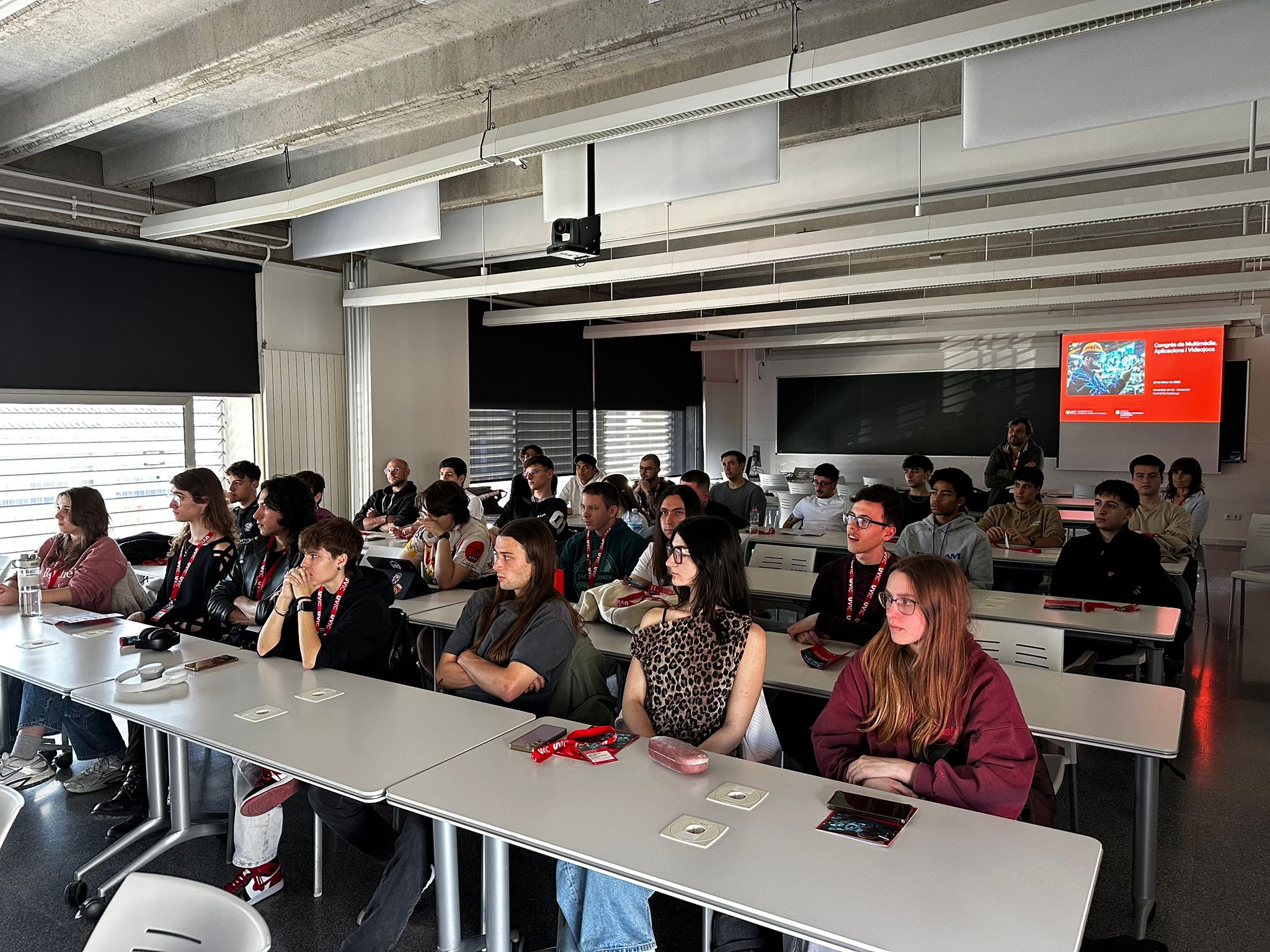 El Congrés de Multimèdia. Aplicacions i Videojocs, celebrat el 26 de febrer a l’Aula de Cinema de la UVic-UCC, va reunir estudiants de cicles formatius interessats en l’àmbit del disseny digital, les aplicacions interactives i els videojocs. La jornada va oferir una visió pràctica i actual de les tendències del sector, combinant una ponència especialitzada amb tallers tècnics pensats per a l’alumnat.