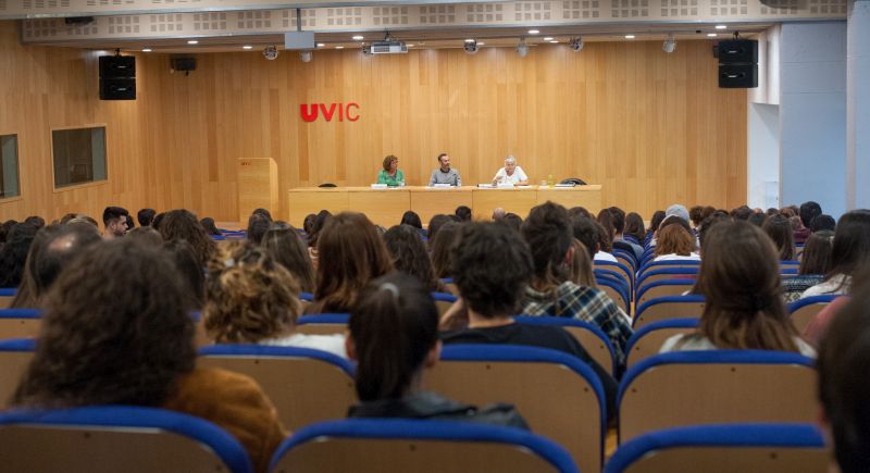 Antonieta Carreño, professora de la Facultat de Pedagogia de la Universitat de Barcelona, ha pronunciat, el 23 d’octubre, a l’Aula Magna, la conferència inaugural de curs de la Facultat d’Educació, Traducció i Ciències Humanes (FETCH), en un acte presidit pel degà de la Facultat, Eduard Ramírez, i la coordinadora del grau en Educació Social, Anna Gómez.