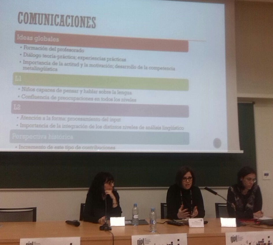Dos membres del GRELL van participar-hi activament. Mariona Casas hi va presentar la comunicació “Què saben els alumnes de primària sobre els temps verbals bàsics? Estratègies i obstacles en la construcció del coneixement sobre la distinció temporal bàsica” i va fer de relatora al final del congrés (juntament amb Mara Fuertes). Llorenç Comajoan va coordinar la taula rodona “Les aportacions cognitives a l’ensenyament de la gramàtica” (amb Maria Josep Cuenca, Felipe Zayas i Alejandro Castañeda) i hi va presentar la seva contribució titulada “Rellevància de la lingüística cognitiva: perspectiva de la disciplina de l’adquisició de llengües”.