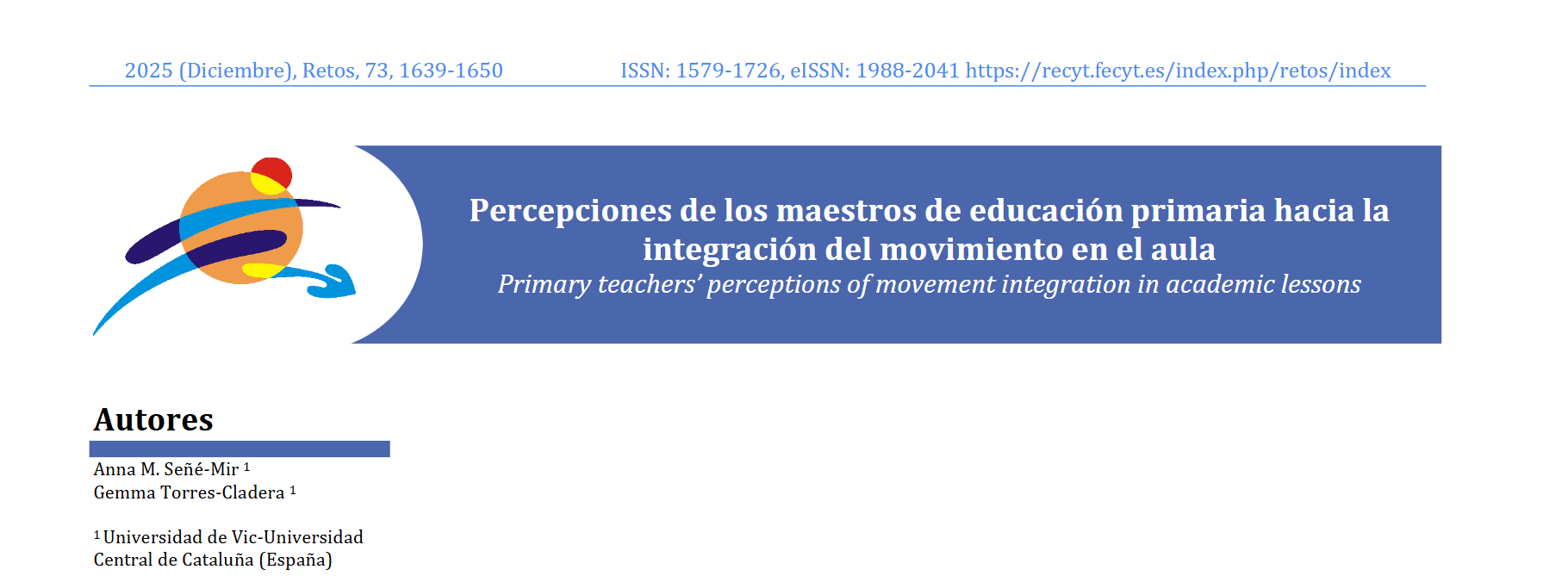 Les investigadores Anna M. Señé i Gemma Torres publiquen els resultats d’un estudi qualitatiu a la revista Retos, centrat en identificar les percepcions dels i les mestres d’educació primària envers la integració del moviment a l’aula.
