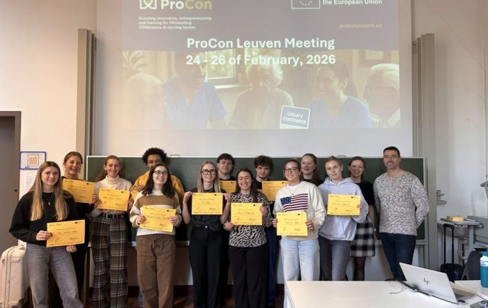 La Facultat d’Engineering Technology de la KU Leuven (Bèlgica) va acollir la setmana passada una trobada internacional de tres dies que va reunir professionals sanitaris, investigadors i estudiants europeus per desenvolupar recursos educatius sobre innovació i emprenedoria aplicats a l’atenció de llarga durada. L’activitat s’emmarcava en el projecte europeu ProCon, finançat pel programa Erasmus+ i coordinat per la UVic-UCC, que busca reforçar la innovació en l’àmbit sanitari, especialment en la cura de la continència i en noves formes d’organització del treball en residències geriàtriques.