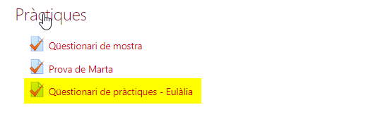 - Entrar a l’activitat del Qüestionari.