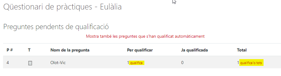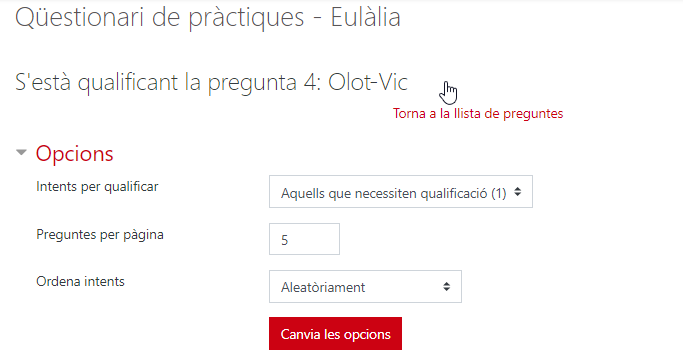 Un dels grans avantatges dels qüestionaris de Moodle és que s’autocorregeixen. Excepte, és clar, les preguntes obertes.