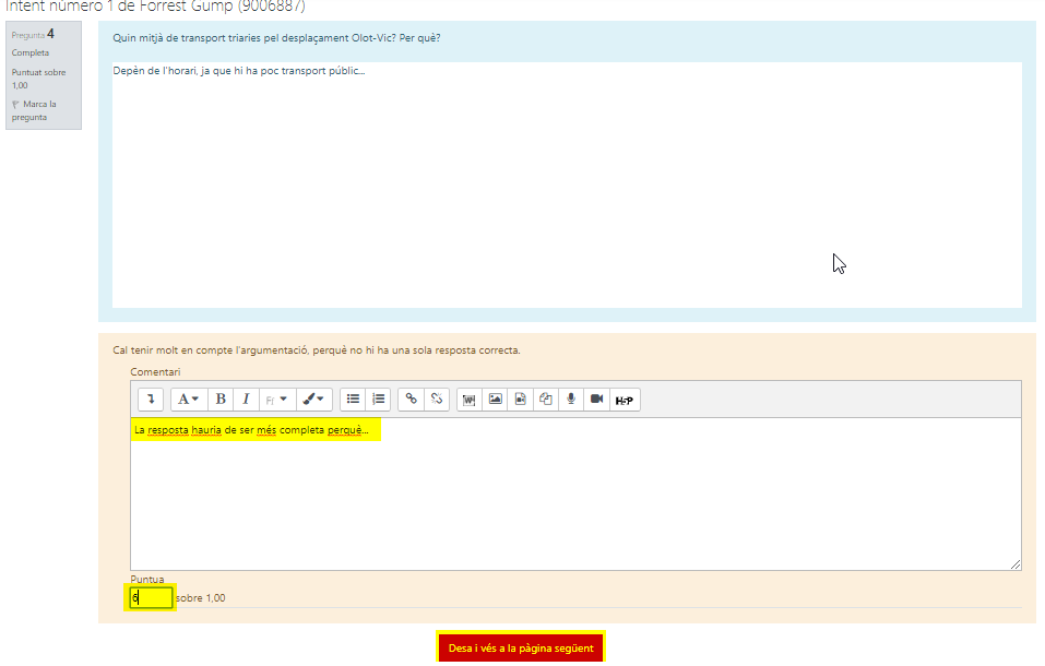 - Comentar la resposta i qualificar numèricament (si és així com ho hem configurat).