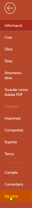 - Seleccionar “Opcions” al final de tot de menú que s’obre.