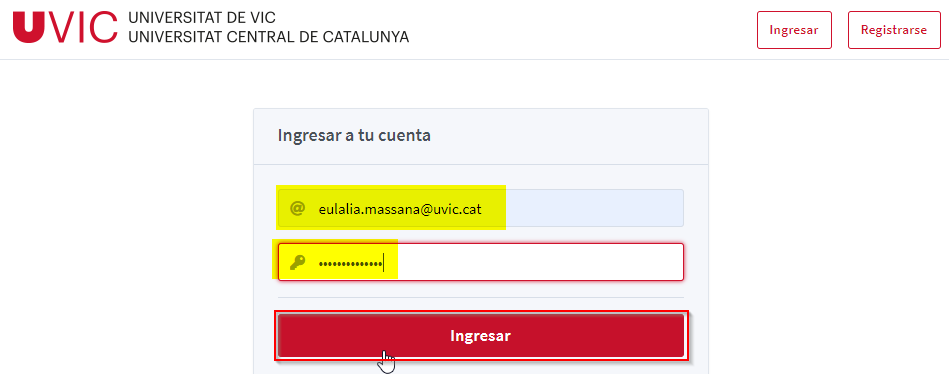 Posem el correu electrònic i la contrasenya i cliquem Ingresar.