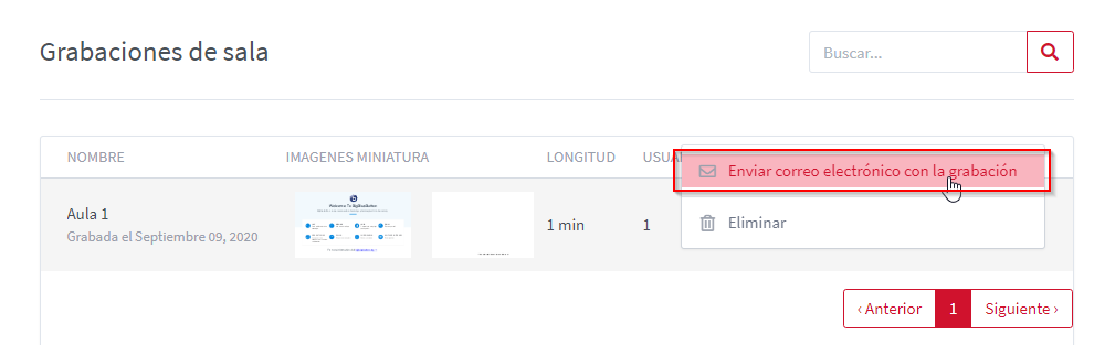 Es mostren els enregistraments corresponents a la sala seleccionada.