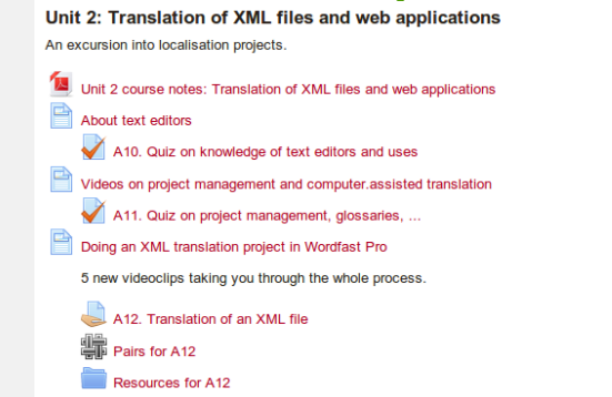 Les activitats haurien d’aparèixer a l’aul virtual a continuació dels materials i recursos relacionats (es poden agrupar en primer lloc tots els recursos de la unitat i, després, les activitats, o es poden intercalar, segons convingui en cada assignatura). Les activitats de Moodle tenen la seva pròpia icona.