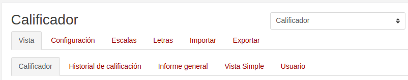 | Calificador | Vista editable de las calificaciones de todo el curso |