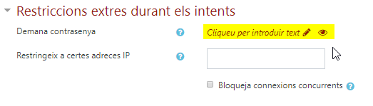 - Per protegir un qüestionari amb contrasenya cal configurar-lo a l’apartat Restriccions extres durant els intents.