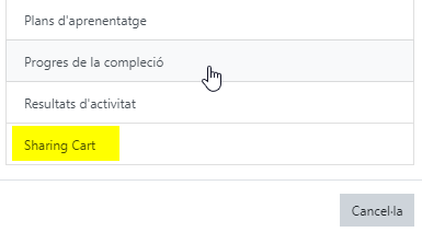 I quan vulguem enganxar a l’aula de destí, podem desplegar la carpeta en el Sharing Cart i triar quins d’aquests recursos són els que volem copiar.