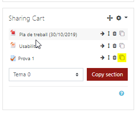 Cal seleccionar la icona de còpia al costat de l’element que volem incorporar a l’aula de destí.