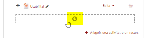 A continuació es mostra un requadre amb línia discontínua al final de cada una de les seccions de l’aula de destí. Cal seleccionar el requadre de la secció on vulguem incorporar aquest recurs.