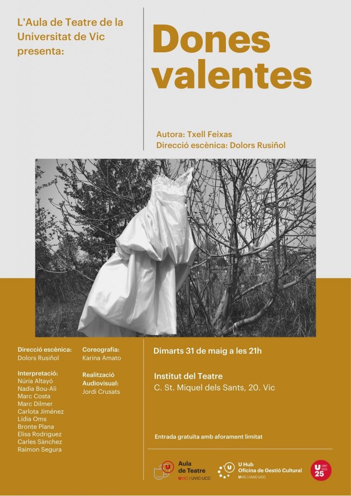 Estrena de l’Aula de Teatre Formulari de reserva d’entrades: Reserva d’entrades (google.com) Comparteix: Feu clic per compartir al Facebook (S'obre en una nova finestra) Facebook Fes clic per compartir al Linkedin (S'obre en una nova finestra) LinkedIn Feu clic per compartir a X (S'obre en una nova finestra) X Feu clic per compartir al WhatsApp (S'obre en una nova finestra) WhatsApp By rosersilva|2022-05-25T08:21:51+02:003 de maig de 2022|Cultura| Compartiu aquesta història. Trieu la vostra plataforma! FacebookXRedditLinkedInWhatsAppTumblrPinterestVkXingEmail: Llocs relacionats Nova exposició ‘Gordes’, de Sil Barrios 12 de novembre de 2025 ‘Els Pastorets’ necessiten intèrprets 6 de novembre de 2025 La comunitat UVic-UCC gaudeix d’un 50 % de descompte en el 43è Festival BBVA de Cinema de Muntanya de Torelló 6 de novembre de 2025