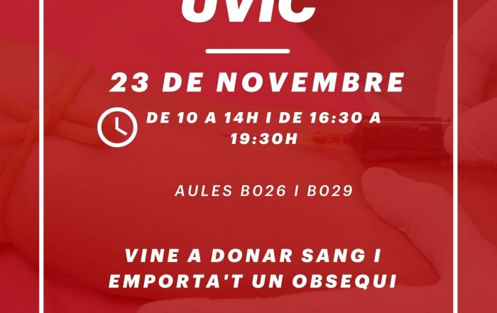 La UVic es prepara per acollir una nova campanya de donació de sang Dimarts dia 23 de novembre Campus Miramarges, aula B026 Cal que els donants reservin hora des del web donarsang.gencat.cat. També es pot [...]